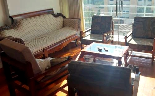 Departamento en Residencial Huancaro, en 5to. Piso con ascensor utilizable con tarjeta que es directo a la sala comedor, área techada 108M2 más 14M2 de cochera, total 122M2 de área, consta de una sala-comedor, cocina tipo americano con todos sus reposteros superiores e inferiores en melamina, una lavandería, un cuarto de servicio con su SS.HH., 03 dormitorios con sus closets de melamina, el dormitorio principal tiene su SS.HH. privado, 01 SS.HH. completo que comparten los 02 dormitorios, en la sala hay un balcón con barandas metáñicas, la cochera es en el semi-sótano, el piso de la sala-comedor, los dormitorios y el pasadizo es de parquetón, y el pisos de la cocina, lavandería, los 03 SS.HH. y el cuarto de servicio es de cerámico, es bastante iluminado y con acabados de primera. Se encuentra inscrita en Registros Públicos
