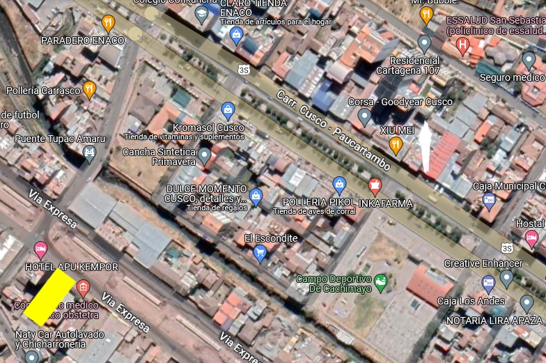 Terreno en venta de 1,000 m2, 10 metros de frontis por 20 metros de profundidad, a la altura de la Urb. Cachimayo, cerca al centro financiero de Larapa y al Centro de Essalud San Sebastián.